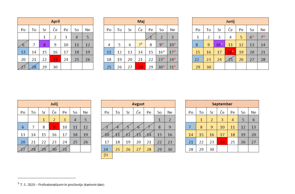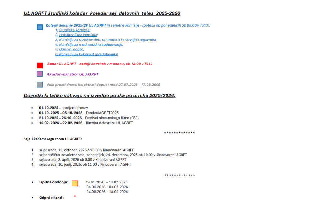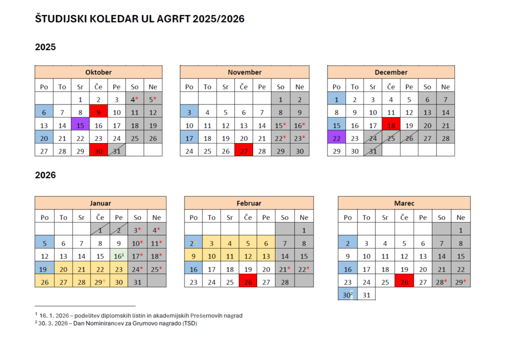 Študijski koledar 2025/2026